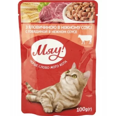 "Мяу" повнораціонний консервований корм для дорослих котів 0,85 гр
